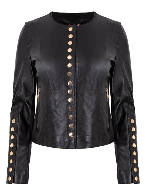 ROCKANDBLUE MARY 55 cm - Dámska kožená bunda v ramonesque štýle v čiernej farbe