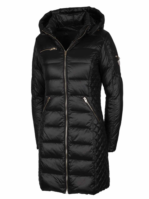 ROCKANDBLUE BEAM 90 cm - Dámska péřová bunda s kapucňou, veľmi úzky strih